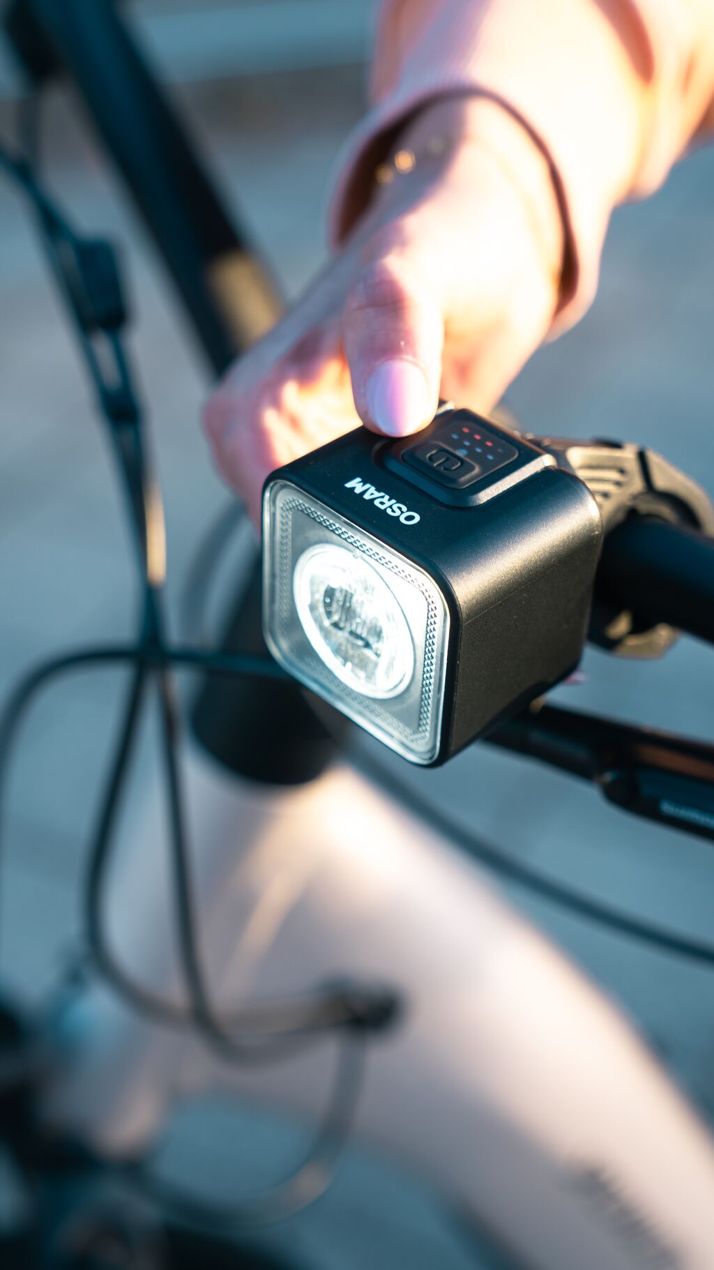 Światło przednie oferuje wiele trybów: automatyczny lub manualny, oraz trzy poziomy jasności (100%, 50%, 25%).