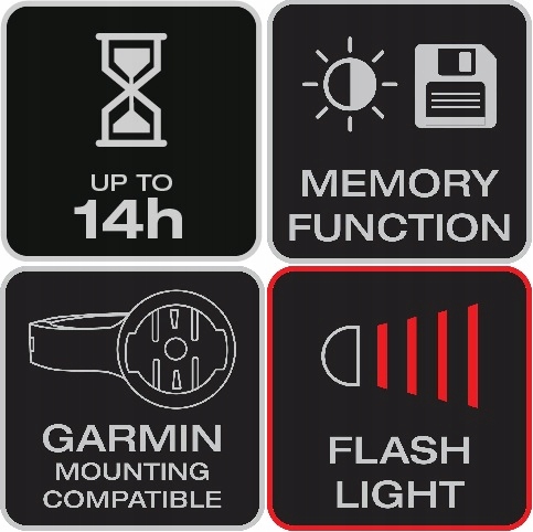 Dzięki żywotności baterii do 14 godzin (światło przednie) i do 16 godzin (światło tylne) idealnie nadaje się na długie podróże lub dojazdy do pracy bez konieczności martwienia się o ładowanie.