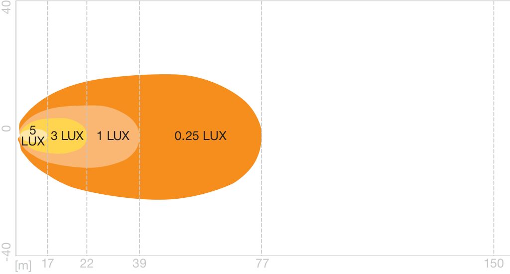 Strumień świetlny o wartości 1 lx: 39 m